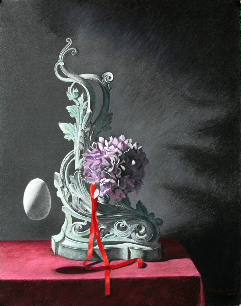 J'ai fait certaines natures mortes d'après des photos personnelles noir et blanc.