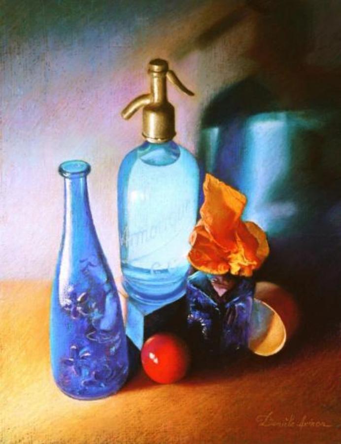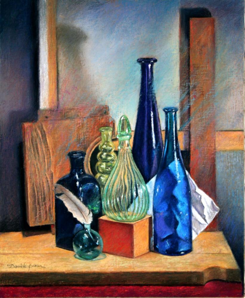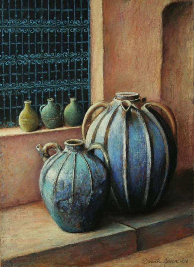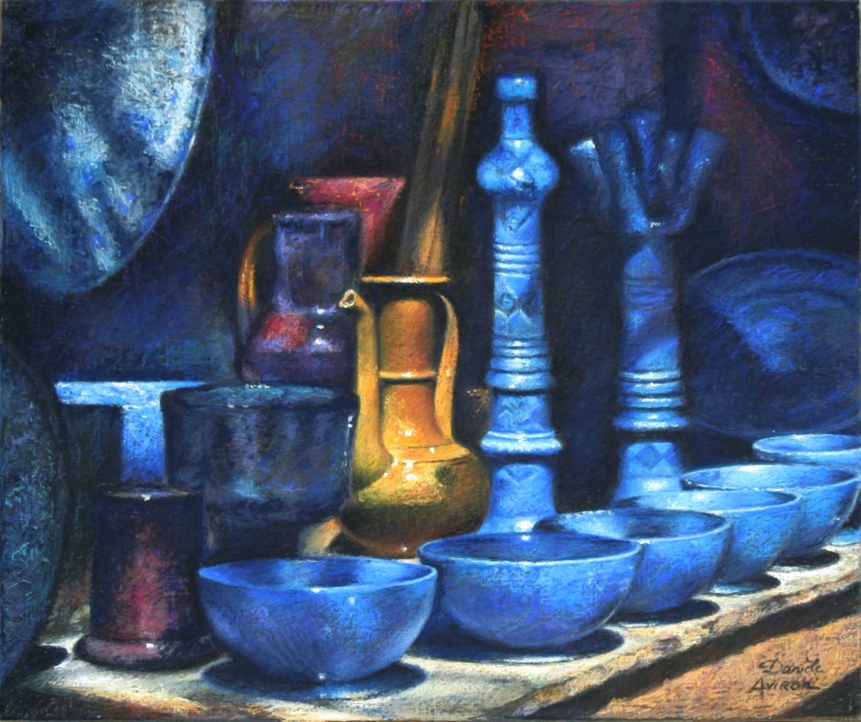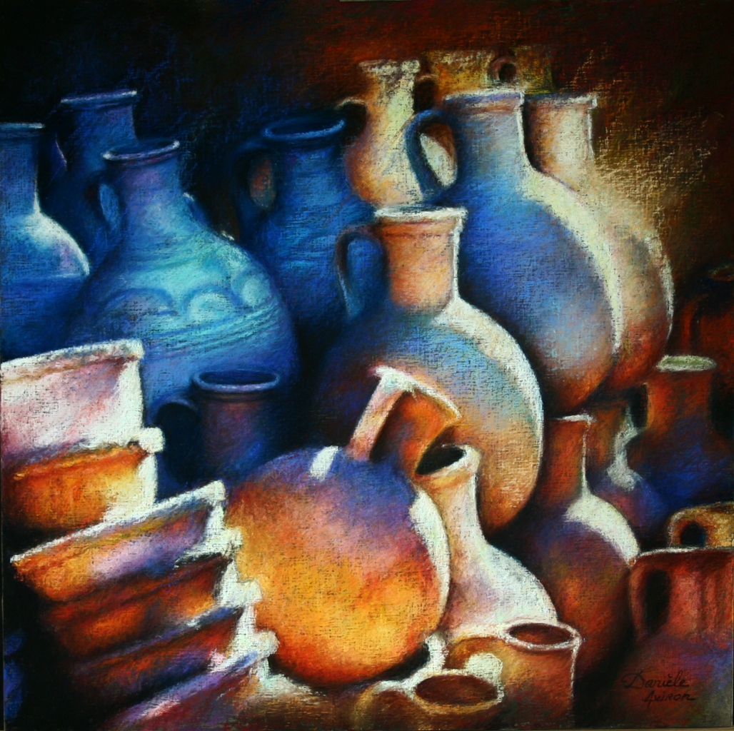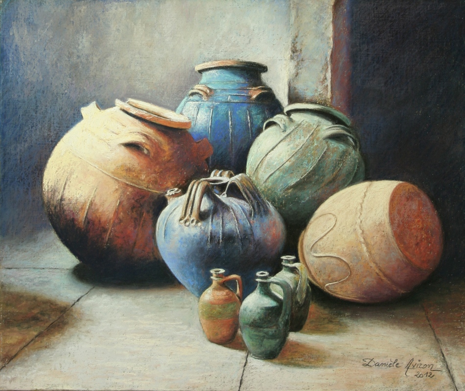 poteries-bleues-pastel sec sur toile 46 x 33.